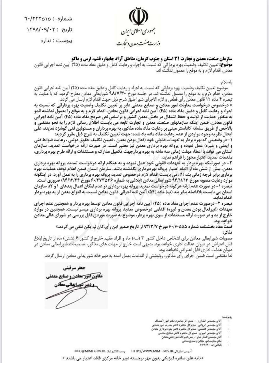 وزارت صنعت، معدن و تجارت با صدور بخشنامهای تازه، مهلت سهماهه به بدهکاران و معادن نیمهفعال داد تا تعهدات معوق خود را انجام دهند و در عین حال، زمینه خلع ید سریع از بهرهبردارانی که پروانههای معدنی را بدون فعالیت نگه داشتهاند فراهم شود؛ اقدامی که به گفته کارشناسان، تلاش برای بازگرداندن سرمایهگذاران واقعی به بخش معدن است.